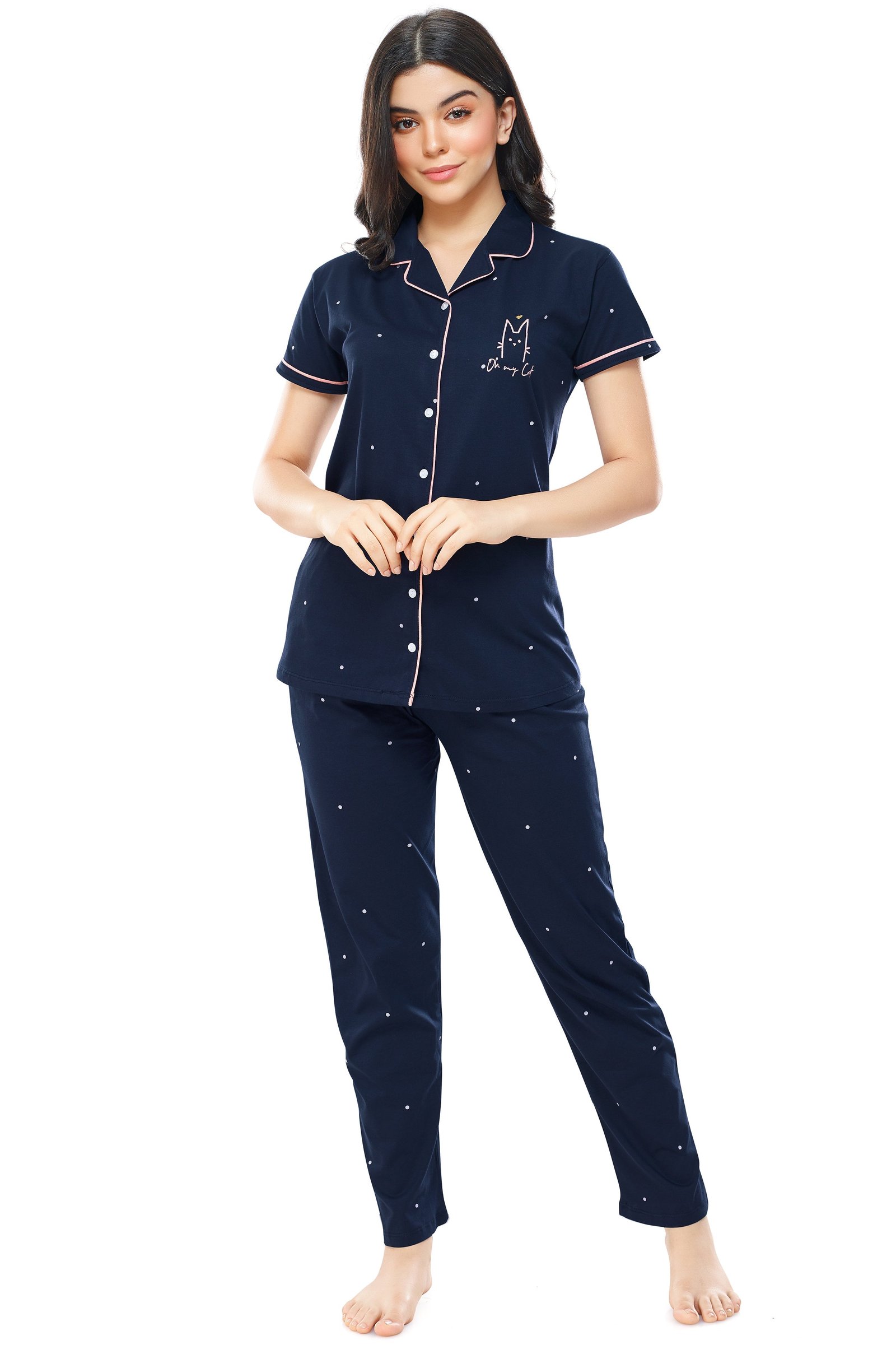 - Navy blue night suit consists of shirt and pyjamas