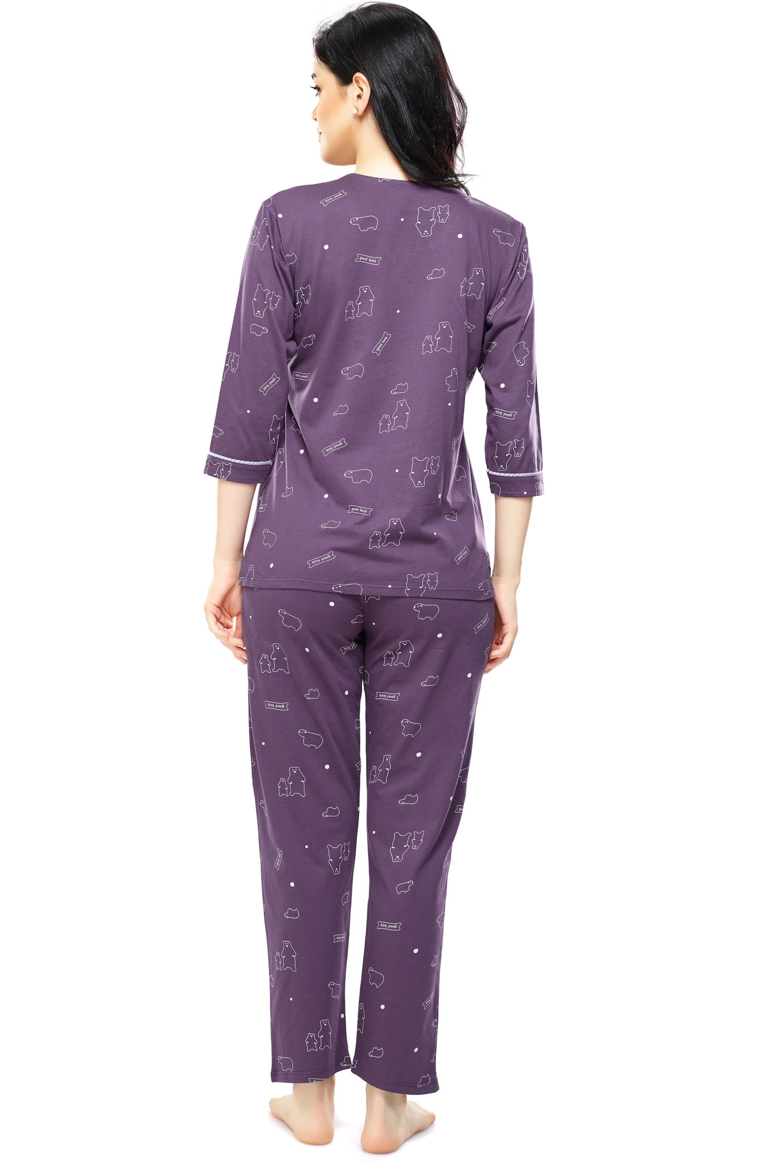 - Purple Bear printed night suit consist of top and a pyjama