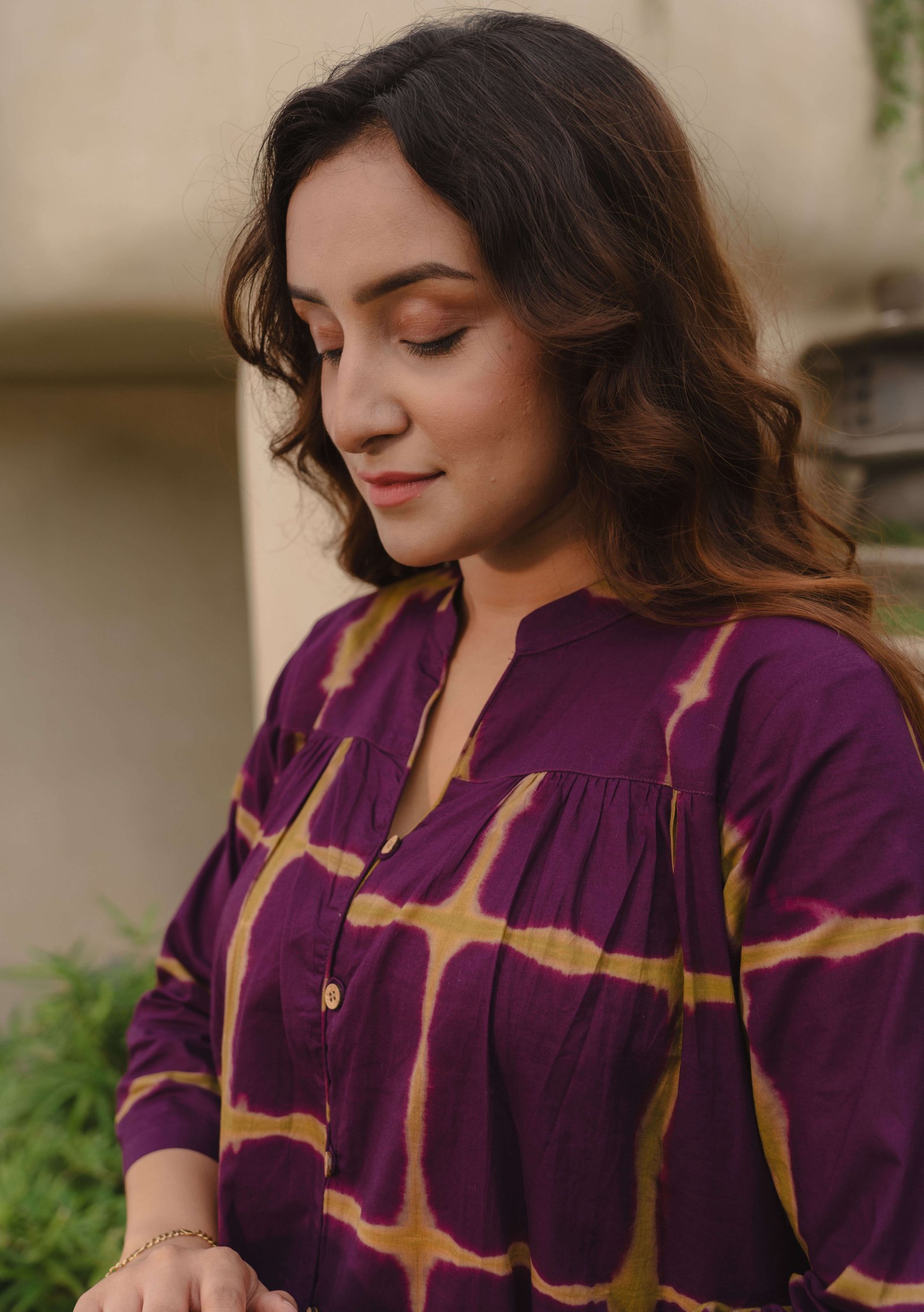 - Cotton Purple Checked Printed consists of Kurti and pyjamas