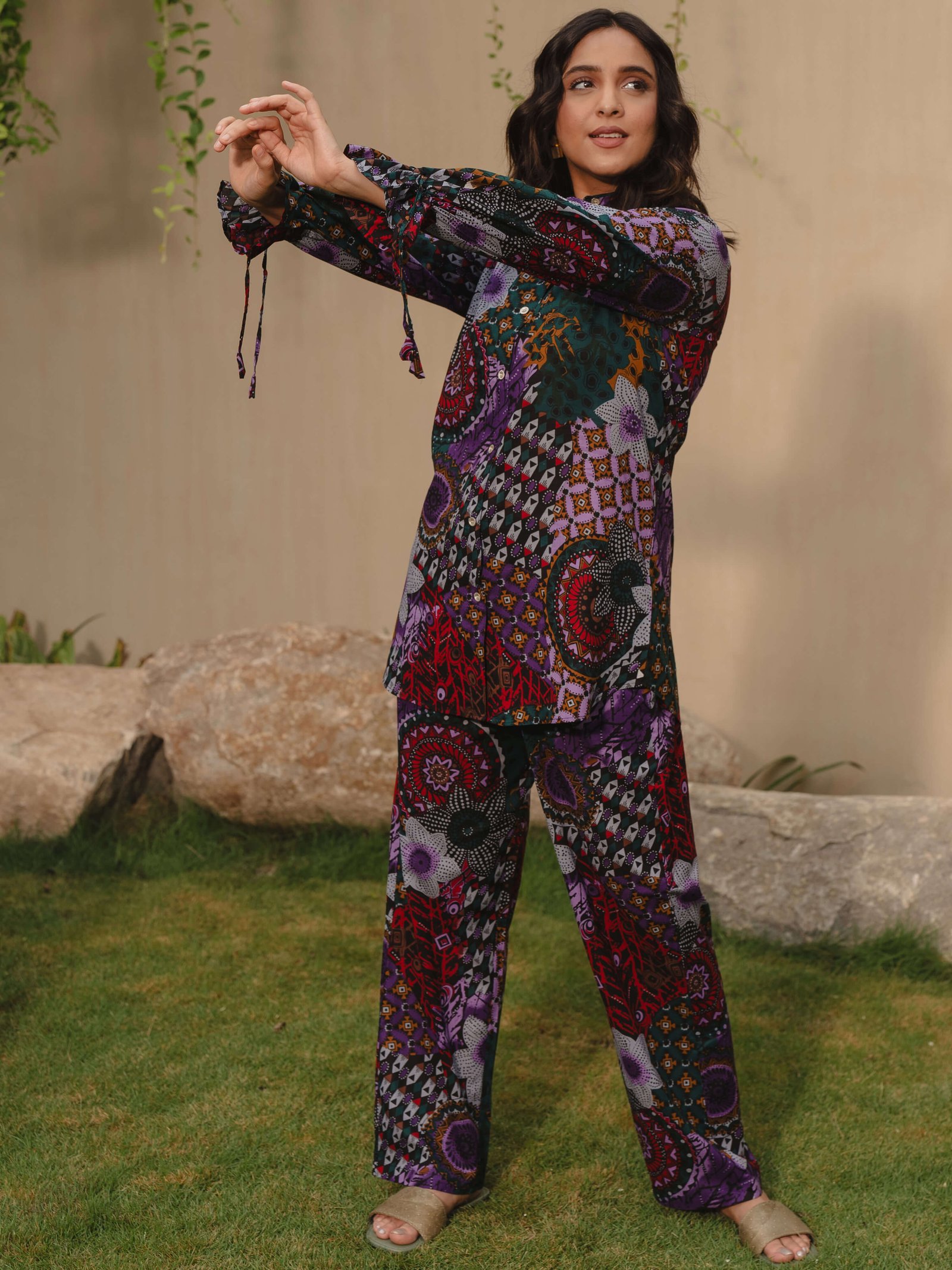 - Cotton Red Ethnic Printed Viscos consists of Kurti and pyjamas