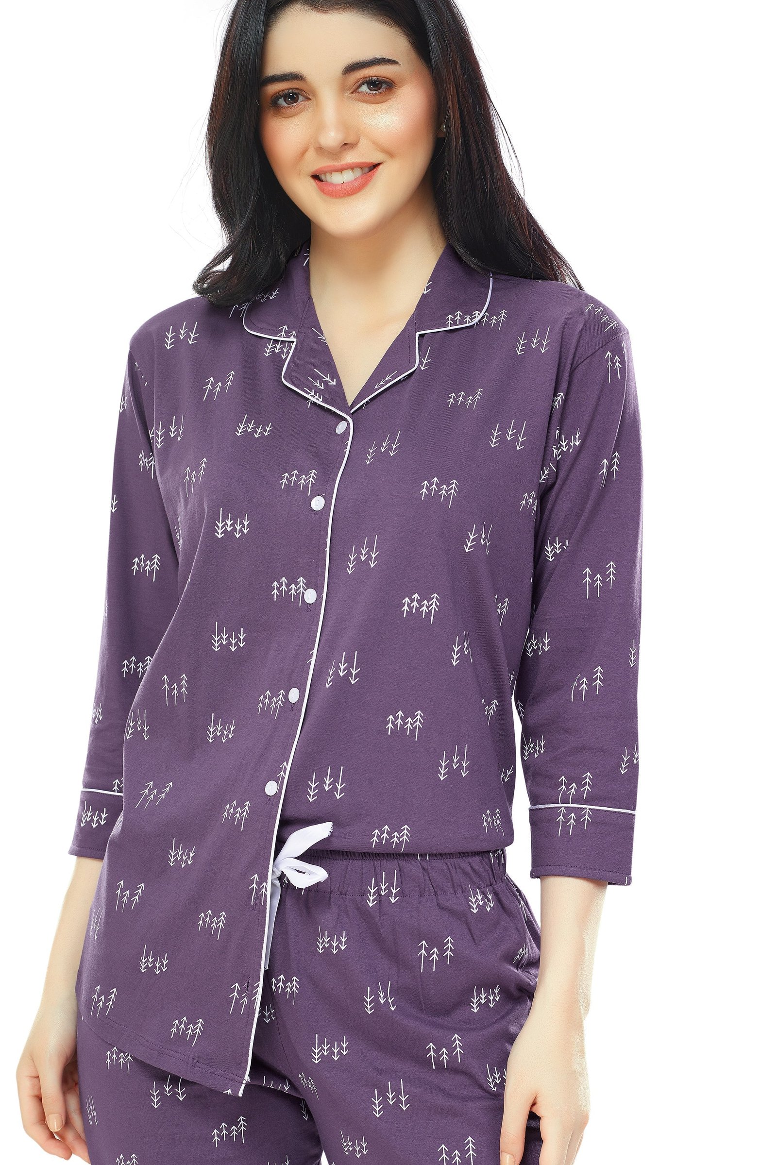 - Violet arrow printed night suit consists of shirt and pyjamas