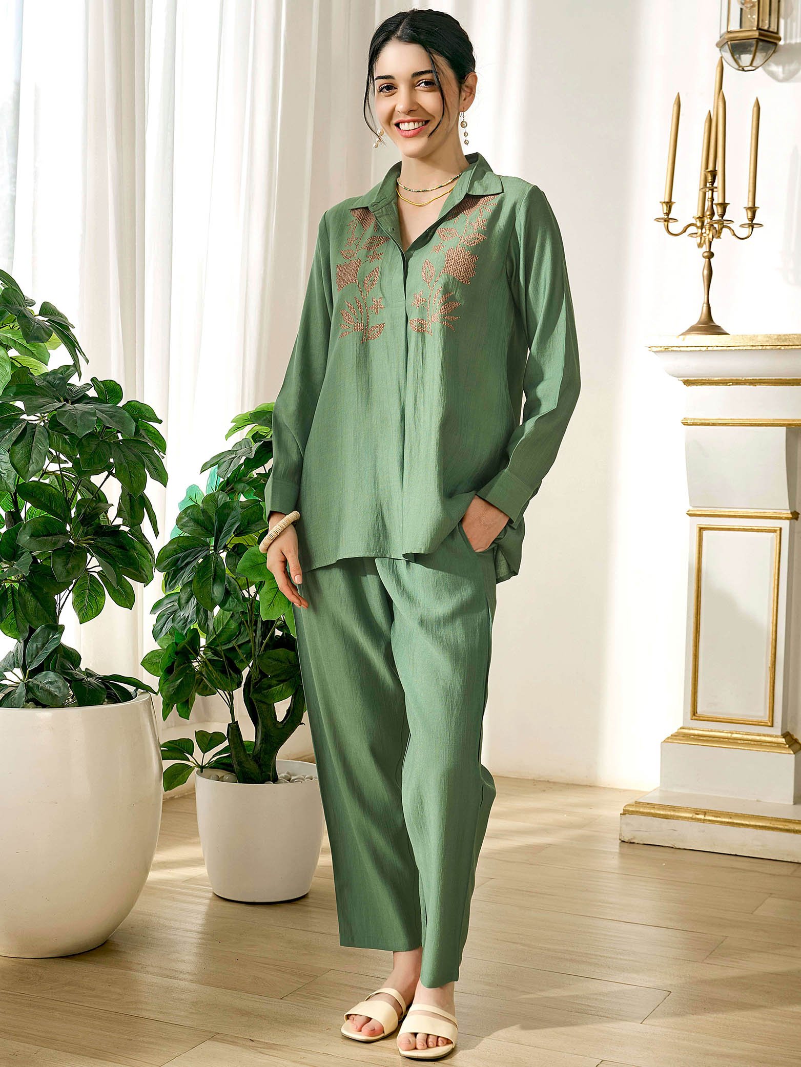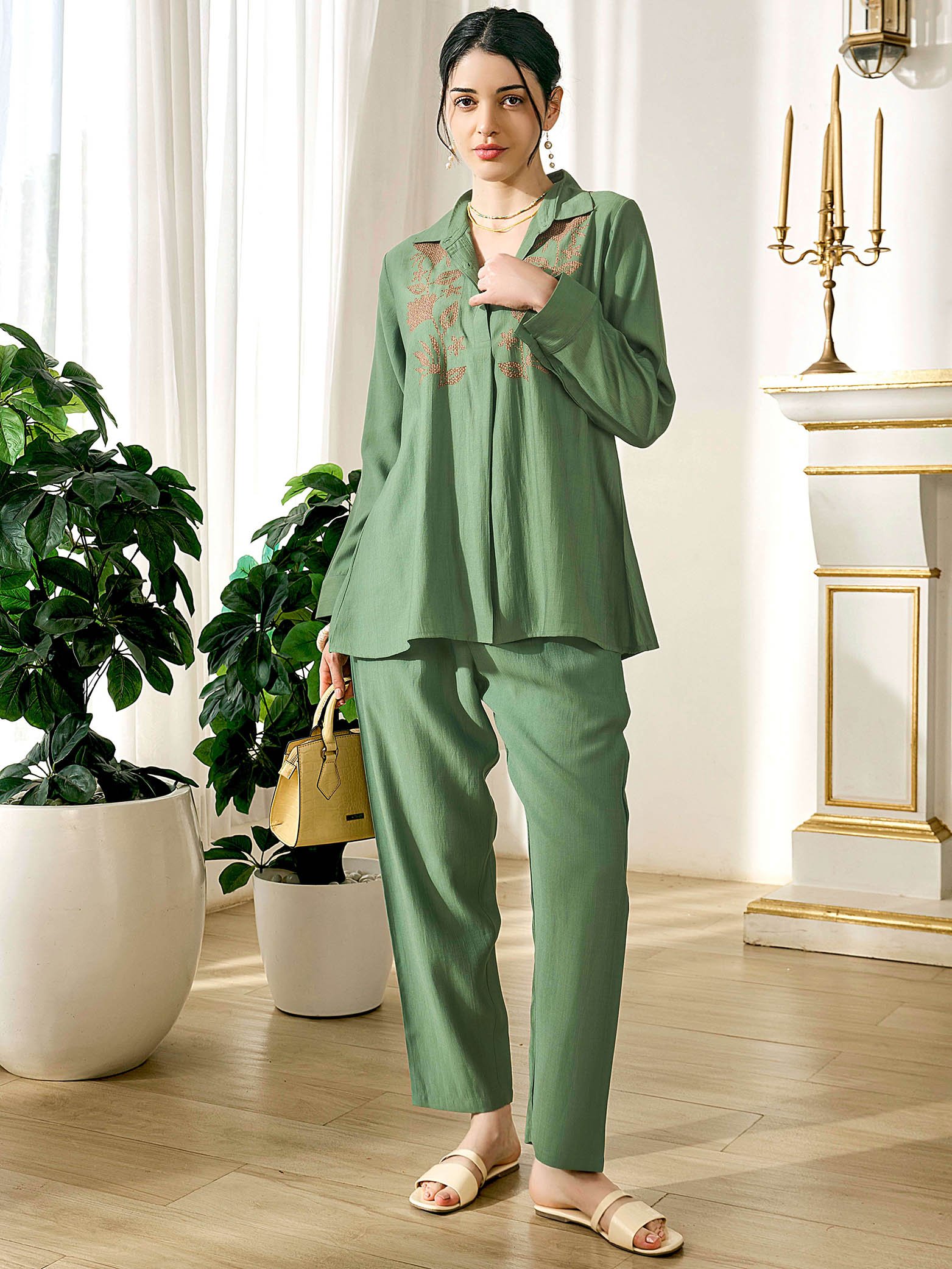 - Green Floral Printed Viscos consists of shirt and pyjamas