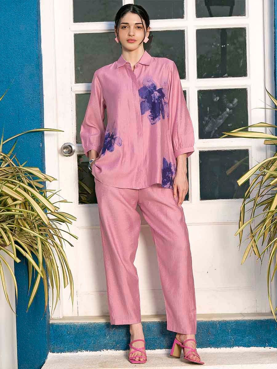 - Pink Floral Printed Viscos consists of shirt and pyjamas