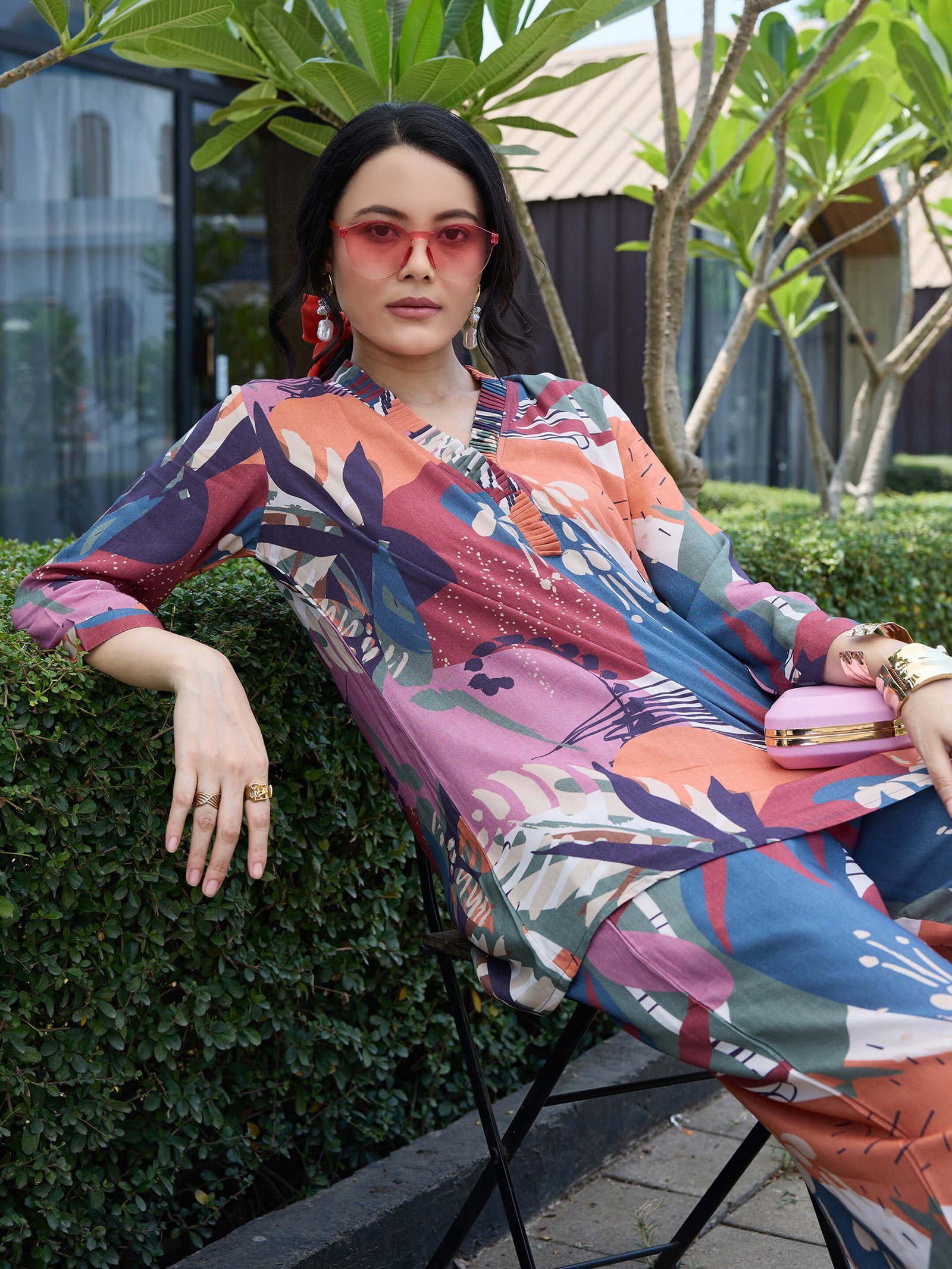 - Rayon Orange Floral Printed Viscos consists of Kurti and pyjamas