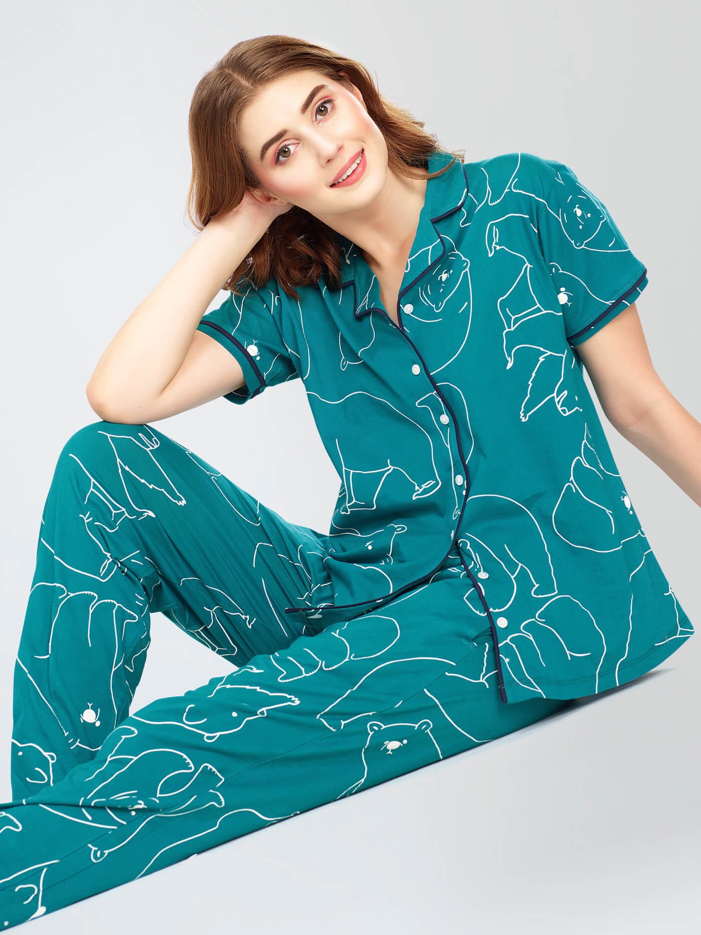 - Teal Green Polar bear printed night suit consists of shirt and pyjamas